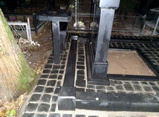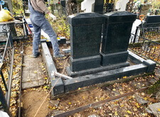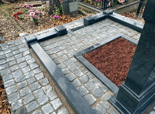 Укладка брусчатки внутри и снаружи могилы,
